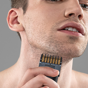 This compact design is suitable for all beard types. It is designed to be used to protect the gadget, without experiencing any cuts on the skin and gives a superior cutting performance with a titanium-coated blade.