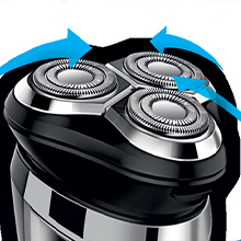 Shave close to the turns and cuts. This comfortable trimming head and rounded head smoothly glides, while protecting the skin. The head moves 5-way flexibly and its independent movements make a close contact with the skin for a fast and even shave.