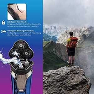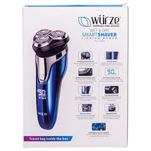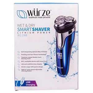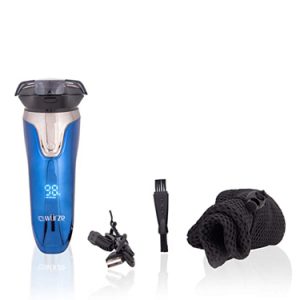 This wet and dry electric shaver and trimmer has LED display mood. It comes with power -rechargeable lithium battery; 90 minute usage and charging time.